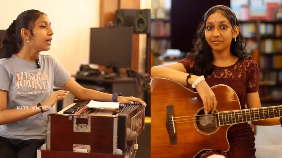 സ്കൂൾ ഒളിമ്പിക്സിന്റെ തീം സോങ് റെക്കോർഡിങ്ങിനിടെ ശിവങ്കരിയും കൂട്ടുകാരും