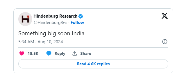 ഇന്ത്യയെ സംബന്ധിച്ച് വലിയ രഹസ്യം പുറത്ത് വിടാനൊരുങ്ങുന്നതായി ഹിൻഡൻബർഗ്