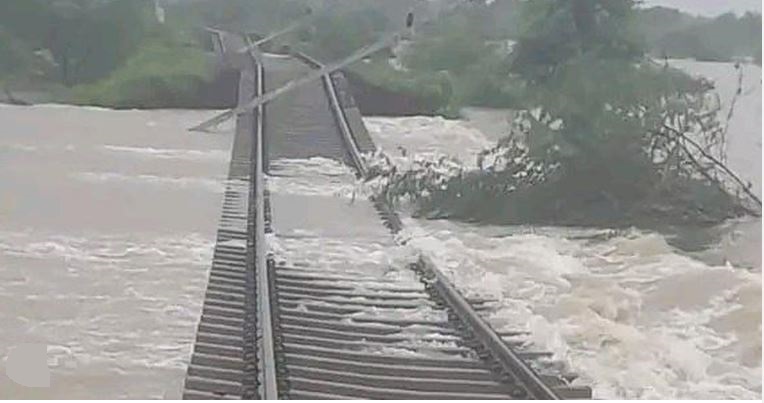 #WATCH | Mahabubabad, Telangana | A railway track between Kesamudram and Mahabubabad was inundated due to continuous heavy rainfall.