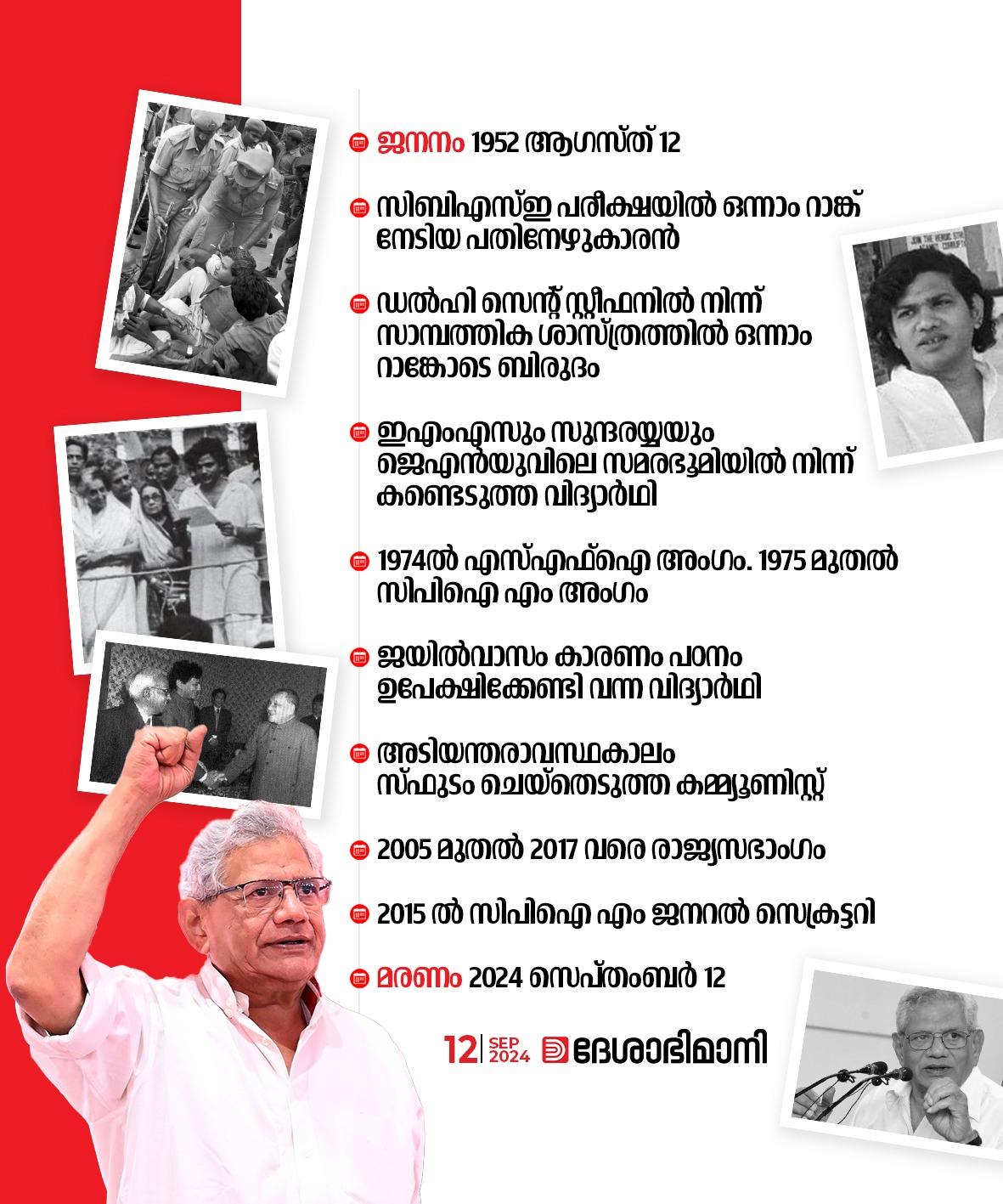 ഇന്ത്യൻ രാഷ്ട്രീയ, സാമൂഹിക സാഹചര്യങ്ങളെ ജനകീയ മുന്നേറ്റങ്ങൾക്കായി പാകപ്പെടുത്താനുള്ള രാഷ്ട്രീയവും സംഘടനാപരവുമായ ഉത്തരവാദിത്തം ദാർശനിക വ്യക്തതയോടെ നിർവഹിച്ച നേതാവായിരുന്നു യെച്ചൂരി. അടിയന്തരാവസ്ഥക്കാലത്തിന്റെ തീച്ചൂടിൽ സമര പോരാട്ടങ്ങളിലൂടെ സ്ഫുടം ചെയ്തെടുത്ത രാഷ്ട്രീയ പ്രവർത്തകനാണ്.