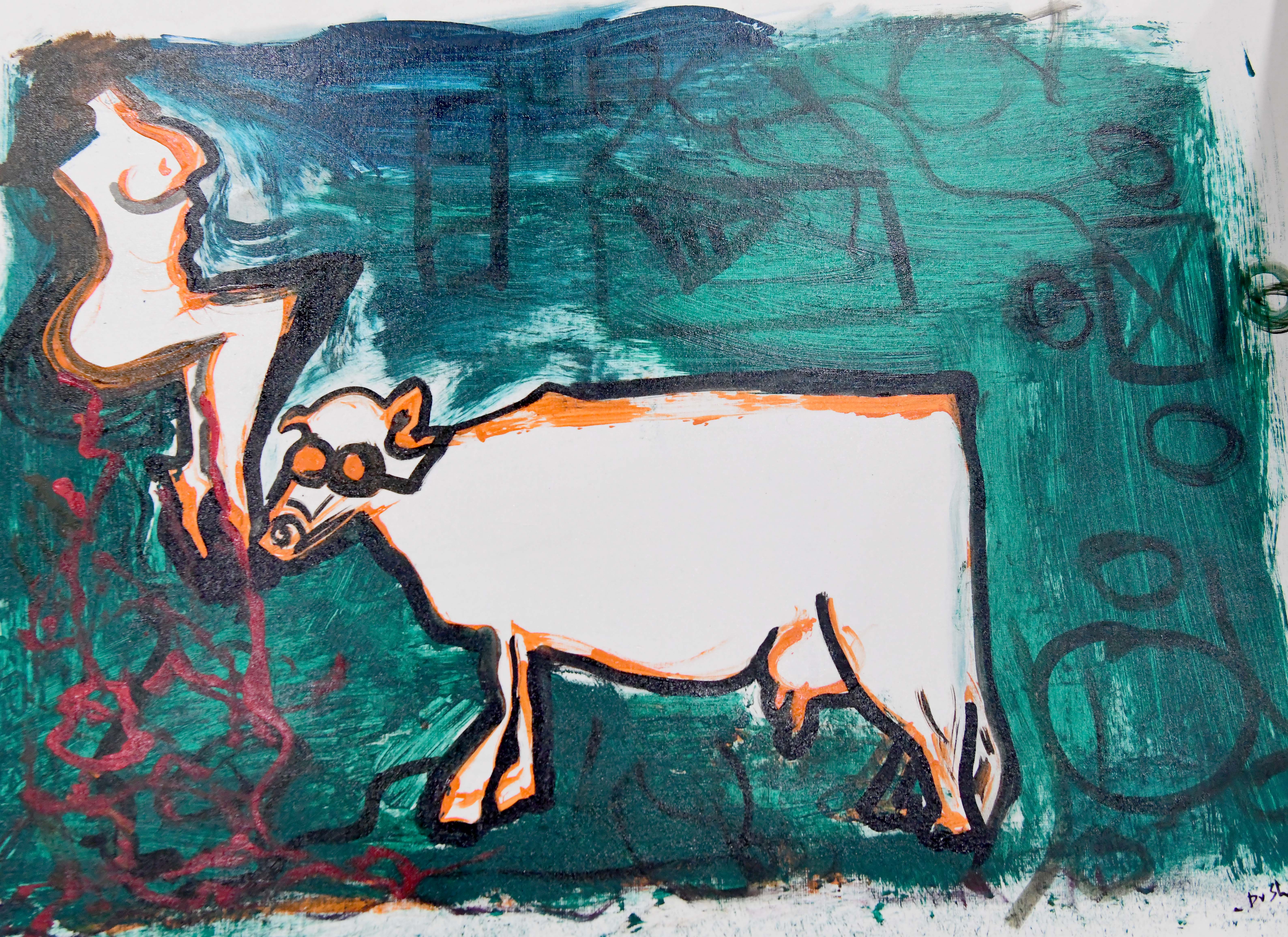 തിരുവനന്തപുരം> 'രാജ്യത്ത് ദൈവികപദവി ലഭിച്ചവരാണ് സ്ത്രീകളും പശുക്കളും, ഏറ്റവും കൂടുതല് ചൂഷണം ചെയ്യപ്പെടുന്നതും ഇവരാണ്'--ഡെന്റല് സര്ജനായ ഡോ. എം എസ് ഷാലറ്റ് തന്റെ ചിത്രത്തെ വിവരിക്കുകയാണ്. ആര്ത്തവരക്തം ഒഴുകുന്ന നഗ്നശരീരത്തോടെ ഒരു സ്ത്രീയും തൊട്ടടുത്ത് അവളുടെ പാദങ്ങള് ചുംബിക്കുന്ന പശുവുമാണ് ക്യാന്വാസില്.