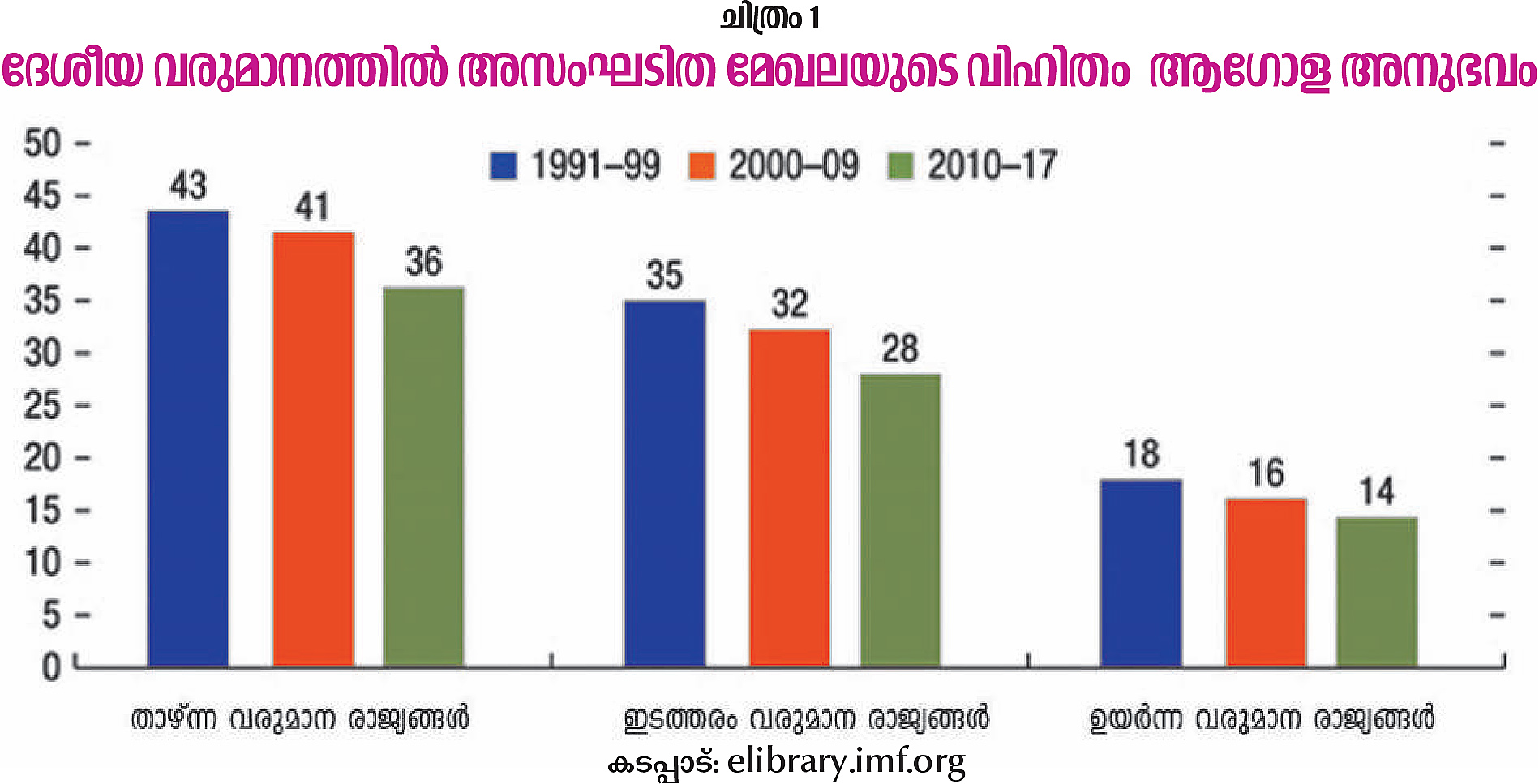 താഴ്ന്ന ഇടത്തരം വരുമാനമുള്ള രാജ്യമാണ് ഇന്ത്യ. 1990കളെ അപേക്ഷിച്ച് 2010കളിൽ മൂന്ന് വിഭാഗം രാജ്യങ്ങളിലും ദേശീയ വരുമാനത്തിൽ അസംഘടിത മേഖലയുടെ വിഹിതം കുറഞ്ഞുവരുന്നതായി കാണാം.
