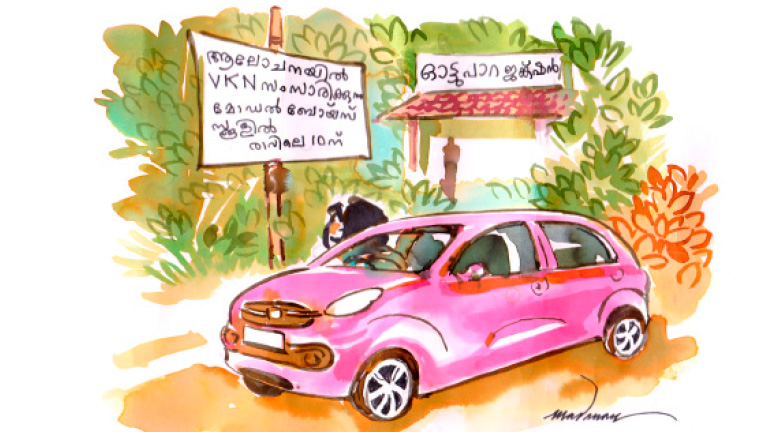 രവീന്ദ്രൻ ഐപിഎസ്സിന്റെ കാർ ആലോചനയുടെ ആളുകൾക്ക് കൗതുകമായി. രവീന്ദ്രന് കൗതുകമായത് അതല്ല. വി കെ എൻ അവിടെ എത്തിയിരിക്കുന്നു. മീറ്റിങ് ആരംഭിക്കാൻ പോകുന്നു. യൂണിഫോമിൽ അല്ലാതെ രവീന്ദ്രൻ ഐപിഎസ് ഗൗരവം മാറ്റിവെച്ച് വി കെയെന് സ്വയം പരിചയപ്പെടുത്തി‐ ലളിതാംബിക അന്തർജനത്തിന്റെ മൂന്നാമത്തെ മകനാണ്. കഷ്ടകാലത്തിന് ഐപിഎസ്സായി. ഇപ്പോൾ ഐജി റാങ്കിലുമായി.