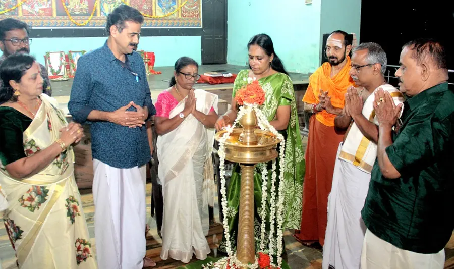 കൊടുങ്ങല്ലൂർ ഭഗവതി ക്ഷേത്രത്തിലെ കർക്കടക നവാഹ യജ്ഞം കൊച്ചിൻ ദേവസ്വം ബോർഡ് സെക്രട്ടറി പി ബിന്ദു ഉദ്ഘാടനം ചെയ്യുന്നു