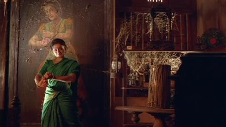 അടഞ്ഞുകിടക്കുന്ന, നാഗവല്ലിയുടെ ചിത്രമുള്ള മുറിക്കുള്ളിൽനിന്നു കേൾക്കുന്ന ചിലങ്കയിട്ട് കാലുകളുമായി ആരോ രണ്ടടി നടക്കുന്നതിന്റെ കിലുക്കം...
