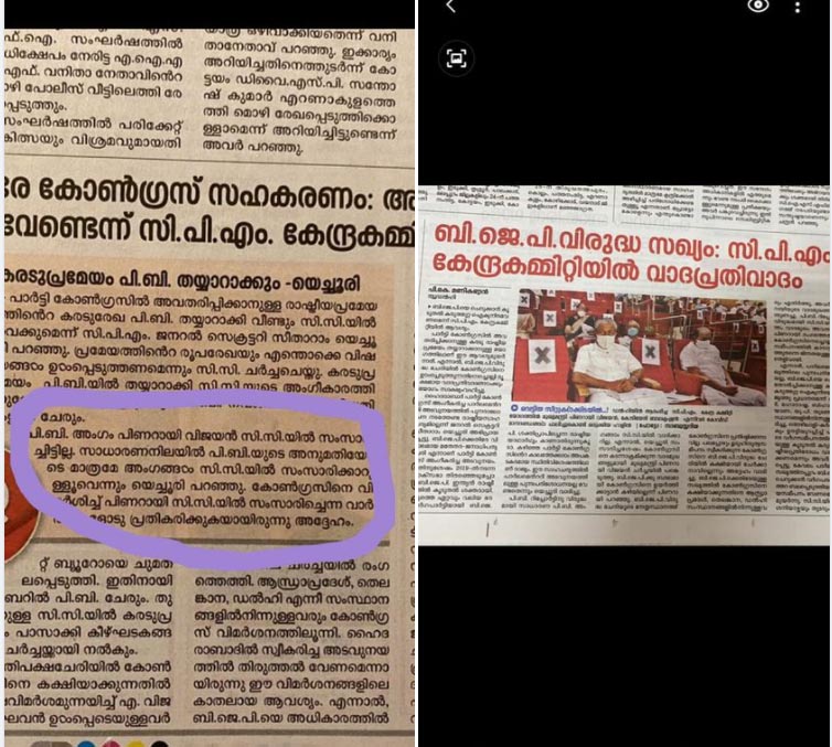മണികണ്ഠന് നേരത്തെ എഴുതിയ വാര്ത്തയില് മുഖ്യമന്ത്രി പിണറായി വിജയന് പിബി നയത്തെ കേന്ദ്രകമ്മിറ്റിയില് രൂക്ഷമായി വിമര്ശിച്ചു എന്ന് അവകാശപ്പെട്ടിരുന്നു. അതു തികച്ചും തെറ്റായ വാര്ത്തയാണ് എന്നും ആ വാര്ത്ത മണികണ്ഠന് കൊടുത്തവന് ഗൂഡലക്ഷ്യം ഉണ്ടെന്നുള്ളത് ഉറപ്പാണ് എന്നും നേരത്തെ ഒരു പോസ്റ്റില് സൂചിപ്പിച്ചിരുന്നു.
