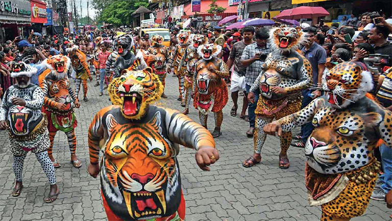 രൗദ്രഭാവത്തിൽ ചടുലമായ നൃത്തച്ചുവടുമായി തെരുവിലിറങ്ങിയ പുലിക്കൂട്ടത്തെ കണ്ട് അത്തം ഘോഷയാത്രയ്ക്കെത്തിയവർ വിറച്ചു. നൃത്തച്ചുവടുകളോടെ പുലി അടുത്തെത്തിയതോടെ കുഞ്ഞുകുട്ടികൾ കരഞ്ഞ് ഒഴിഞ്ഞുമാറി. ഏറെ പണിപ്പെട്ടാണ് രക്ഷിതാക്കൾ കുട്ടികളെ ആശ്വസിപ്പിച്ചത്. പുലികളുമായി ചേർന്നുനിന്ന് സെൽഫിയും ഫോട്ടോയും എടുക്കാനും കാഴ്ചക്കാർ മത്സരിച്ചു. തൃശൂരിൽനിന്ന് എത്തിച്ച വയറൻപുലികളാണ് ഘോഷയാത്ര വർണാഭമാക്കിയത്.