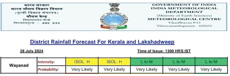 ജൂലൈ 18നും 25നും കേന്ദ്ര കാലാവസ്ഥാ വകുപ്പ് ഇറക്കിയ രണ്ട് എക്സ്റ്റന്റഡ് റേഞ്ച് പ്രവചനത്തിൽ 29ന് റെഡ് അലർട്ട് ഉണ്ടായിരുന്നില്ല. 28നും 29നും ഒറ്റപ്പെട്ട സ്ഥലങ്ങളിൽ മിതമായ മഴയാണ് പ്രവചിച്ചത്. ജൂലൈ 26 മുതൽ ആഗസ്ത് ഒന്നുവരെ സാധാരണ മഴയാണെന്നാണ് തിരുവനന്തപുരം കാലാവസ്ഥാ നിരീക്ഷണകേന്ദ്രവും പറഞ്ഞത്. പുണെ കാർഷിക കാലാവസ്ഥ പ്രവചന വിഭാഗം ജൂലൈ 26മുതൽ 30വരെ 15 മില്ലീമീറ്റർ മഴയാണ് പ്രവചിച്ചിരുന്നത്. മറ്റ് മുന്നറിയിപ്പുകൾ നൽകിയിരുന്നില്ല.൩൦ന് രാവിലെ ൮.൩൦ന് അവസാനിച്ച 48 മണിക്കൂറിൽ പുത്തുമലയിൽ 572 മില്ലീമീറ്റർ മഴയാണ് പെയ്തത്. ജിയോളജിക്കൽ സർവേ ഓഫ് ഇന്ത്യ 29ന് നൽകിയ മുന്നറിയിപ്പിൽ ഉരുൾപൊട്ടൽ സാധ്യത പ്രവചിച്ചിരുന്നില്ല. പച്ച അലർട്ടായിരുന്നു. 23 മുതൽ 29വരെ ഇരുവഴിഞ്ഞിപുഴയിലോ ചാലിയാറിലോ കേന്ദ്ര ജല കമീഷൻ പ്രളയമുന്നറിയിപ്പും നൽകിയില്ല. 2017 നവംബറിൽ ഓഖി ചുഴലിക്കാറ്റും കേന്ദ്ര കാലാവസ്ഥാ വകുപ്പ് പ്രവചിച്ചിരുന്നില്ല. ചുഴലിക്കാറ്റുണ്ടായി മണിക്കൂറുകൾക്ക് ശേഷമാണ് മുന്നറിയിപ്പ് എത്തിയത്. സംസ്ഥാന സർക്കാരിന് നേരത്തെ മുന്നറിയിപ്പ് നൽകിയിരുന്നുവെന്നായിരുന്നു ആദ്യം കേന്ദ്ര അവകാശവാദം. പിന്നീട് പാർലമെന്റിൽ വീഴ്ച സമ്മതിച്ചു. ആഭ്യന്തര മന്ത്രാലയത്തിന്റെ പാർലമെന്ററി സ്ഥിരംസമിതിയും കാലാവസ്ഥാ വകുപ്പിന്റെ വീഴ്ച സ്ഥിരീകരിച്ചിരുന്നു.