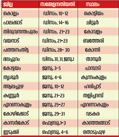 ജില്ലാ സമ്മേളനങ്ങൾക്ക് ഡിസംബറിൽ തുടക്കം