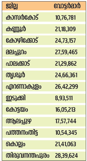 കരട് വോട്ടർ പട്ടിക പ്രസിദ്ധീകരിച്ചു ; സംസ്ഥാനത്ത് 2.59 കോടി വോട്ടർമാർ