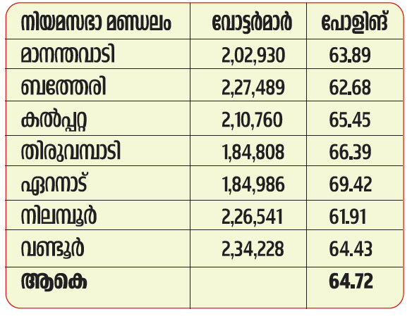 വയനാട് ഉപതെരഞ്ഞെടുപ്പ് ; പോളിങ് 64.72 ശതമാനം