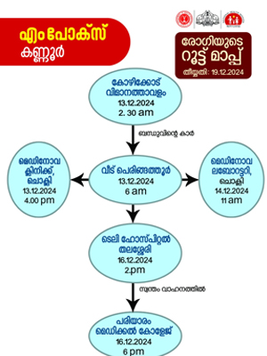 എം പോക്സ് സ്ഥിരീകരിച്ച കണ്ണൂർ സ്വദേശിയുടെ റൂട്ട് മാപ്പ് പുറത്ത് വിട്ടു