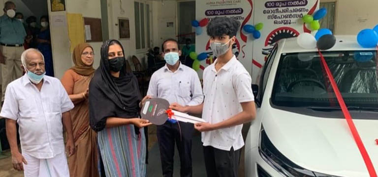 പേഷ്യന്റ് കെയര് സ്പോണ്സര്ഷിപ്പ് പ്രോഗ്രാമിലെ കാര് വിജയിയായ പറവൂര് സ്വദേശി ഹെല്ന റെജിയുടെ മകന് വലപ്പാട് ഗ്രാമപഞ്ചായത്ത് പ്രസിഡന്റ് ഷിനിത ആഷിഖ് കാറിന്റെ താക്കോല് സമ്മാനിക്കുന്നു