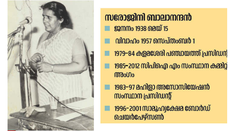 പറവൂരിൽ മകളുടെ വസതിയിൽ ചൊവ്വ രാത്രി അന്തരിച്ച സരോജിനി ബാലാനന്ദന്റെ മൃതദേഹം വഹിച്ചുള്ള വിലാപയാത്ര ആദ്യമെത്തിയത് കളമശേരി മുനിസിപ്പൽ ടൗൺഹാളിലേക്കാണ്. പ്രിയനേതാവിന് അന്ത്യാഞ്ജലി അർപ്പിക്കാനെത്തിയവരിൽ പഴയതലമുറ ഓർത്തെടുക്കുകയായിരുന്നു കളമശേരിയുടെ ആദ്യ വനിതാ പഞ്ചായത്ത് പ്രസിഡന്റിന്റെ ഭരണമികവ്.