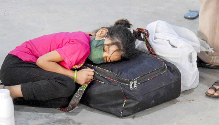 ഗുജറാത്തിൽനിന്ന് ഉത്തർപ്രദേശിലേക്കുള്ള യാത്രയ്ക്കിടെ തളർന്നുറങ്ങുന്ന കുഞ്ഞ്