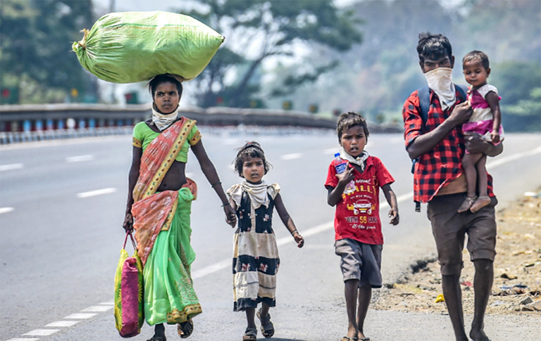 പഞ്ചാബിൽനിന്ന് ഉത്തർപ്രദേശിലെ ജാൻസിയിലേക്ക് നടക്കുന്നവർ