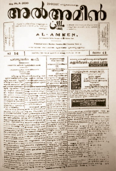 കൂടെ ജയിലിൽ കഴിയുന്ന ദേശീയവാദിയായ അസ്സൻകോയമുല്ലയുമായി അദ്ദേഹം ഇക്കാര്യം ചർച്ച ചെയ്തു. ഇരുവരും ചേർന്നാണ് തീരുമാനമെടുത്തത്. അവർ ജയിൽമോചിതരായശേഷം 1923 ഡിസംബറിൽ ഒരു കമ്പനി രജിസ്റ്റർ ചെയ്തു. 1924 ഒക്ടോബർ 12–ന് നബിദിനത്തിൽ മഹാകവി വള്ളത്തോളിന്റെ ആശംസയോടെ അൽഅമീൻ പുറത്തുവന്നു. .jpg)