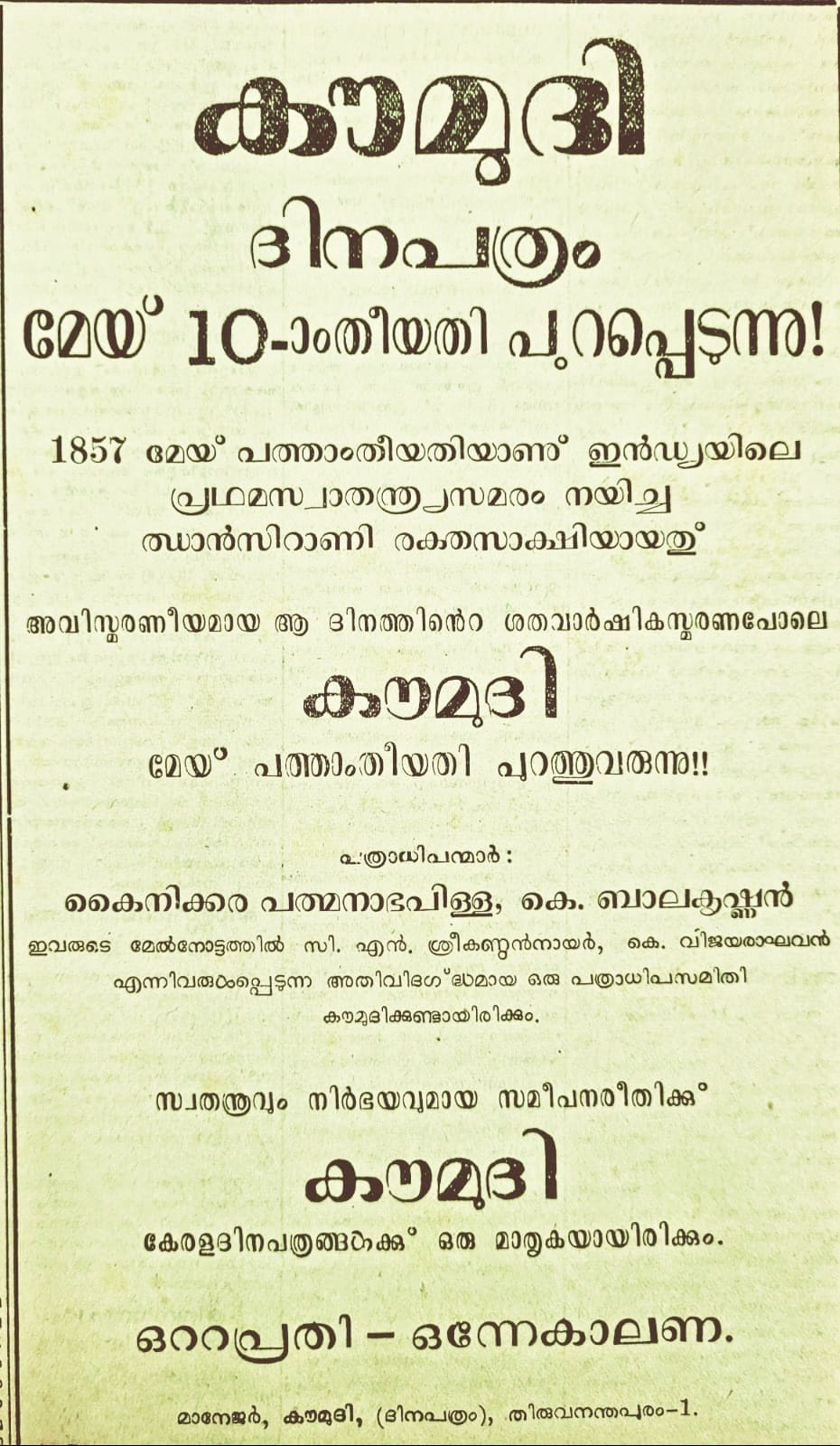 പറഞ്ഞല്ലോ,കമ്മ്യൂണിസ്റ്റ് വിരുദ്ധത മുഖമുദ്രയായി സ്വീകരിച്ചു പോന്ന അന്നത്തെ പത്രങ്ങൾക്ക് അങ്ങനെയൊരു അഭിപ്രായമുണ്ടായിരുന്നില്ല.കൈനിക്കരയും കെ ബാലകൃഷ്ണനും പത്രാധിപൻമാരും സി എൻ ശ്രീകണ്ഠൻ നായർ,കെ വിജയരാഘവൻ എന്നിവർ സഹപത്രാധിപന്മാരുമായി ആയിടെ ആരംഭിച്ച കൗമുദി പത്രം അവരുടെ മുഖപ്രസംഗത്തിൽ ഇങ്ങനെ ആക്ഷേപിച്ചു.