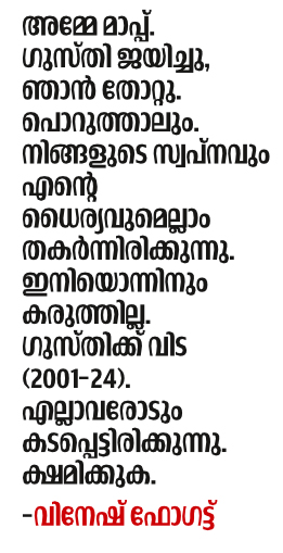 വിനേഷ് കുറിച്ചു അമ്മേ മാപ്പ്