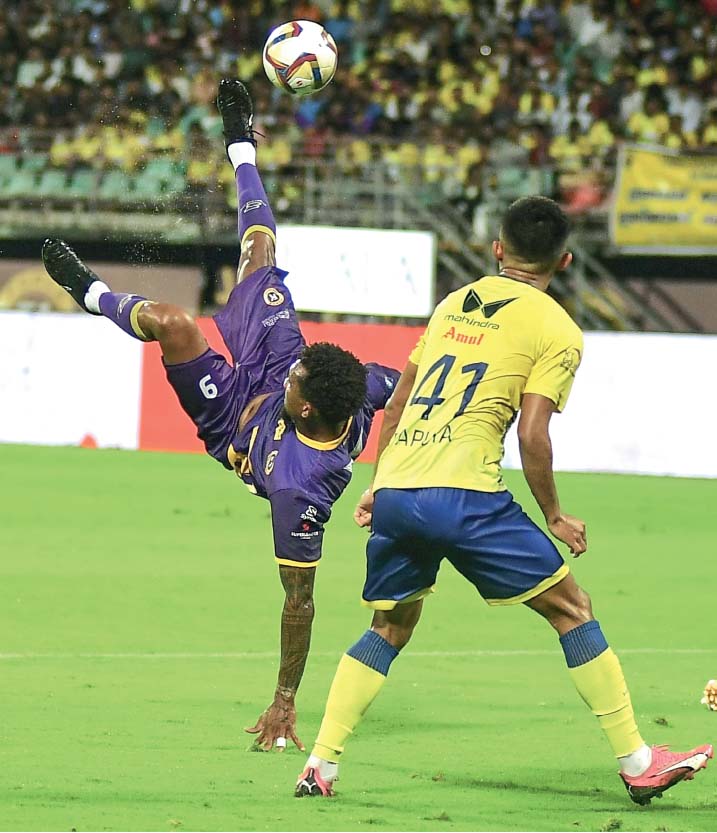 സ്വന്തംതട്ടകത്തിൽ കരുത്തോടെയാണ് കൊച്ചി തുടങ്ങിയത്. ഭാവനസമ്പന്നമായ നീക്കങ്ങളിലൂടെ മുന്നേറി. പലപ്പോഴും എതിരാളിയുടെ ഗോൾമുഖത്ത് മിന്നലാക്രമണം നടത്തി. നാലാംമിനിറ്റിൽ മുന്നേറ്റക്കാരൻ ദോറിയെൽടണിന്റെ ഹെഡ്ഡർ പുറത്തുപോയി. ക്യാപ്റ്റൻ അർജുൻ ജയരാജും വിങ്ങർ നിജോ ഗിൽബർട്ടുമായിരുന്നു നീക്കങ്ങൾക്ക് ജീവൻ നൽകിയത്. എന്നാൽ, തുടക്കത്തിലെ മേൽക്കൈ തുടരാൻ ആതിഥേയർക്ക് കഴിഞ്ഞില്ല. ക്ഷമയോടെ കാത്തുനിന്ന കൊമ്പൻസ് തനിനിറം കാട്ടാൻ തുടങ്ങി. എതിർ പോസ്റ്റിലേക്ക് വിശ്രമമില്ലാതെ മാർച്ച് ചെയ്തു. ഇതോടെ കൊച്ചി പ്രതിരോധം ചിതറി. ഇരുവശങ്ങളിൽനിന്ന് ക്രോസുകൾ പറന്നു. വലതുവിങ്ങിൽ മുഹമ്മദ് അഷർ ഒറ്റയാൻ കുതിപ്പിലൂടെ ബോക്സിലേക്ക് കടന്ന് അടി തൊടുത്തെങ്കിലും പുറത്തായിരുന്നു. ഇടതുപാർശ്വത്തിലൂടെ ഗണേശൻ നീട്ടിയ സുന്ദരൻ പന്ത് ഗോൾമുഖത്ത് മാർകോസ് വിൽഡറിലെത്തി. എന്നാൽ, മുന്നേറ്റക്കാരന്റെ അടി കൊച്ചി ഗോളി എസ് ഹജ്മൽ കൈയിലൊതുക്കി. തൊട്ടുപിന്നാലെ കാത്തിരുന്ന ഗോൾ കൊമ്പൻസ് നേടി. ഡേവി കുൻഹിന്റെ കോർണറിൽനിന്ന് ഉജ്വല ഹെഡ്ഡറിലൂടെ വിൽഡർ വലകുലുക്കി.