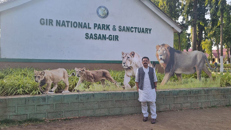 ഗുജറാത്തിലെ ഗിർവനം കൃത്രിമമായി ഉണ്ടാക്കിയതാണെന്നാണ് ഒറ്റ നോട്ടത്തിൽ തോന്നുക. വയനാട്ടിലെയും ഇടുക്കിയിലെയും പാലക്കാട്ടെയും നിലമ്പൂരിലെയും കാടുകൾ കണ്ട ഒരാൾക്ക് ഗിർവനം ഒരു വനമേ അല്ല. ഒരുതരം പൊന്തക്കാടുകൾ മാത്രം. ഒരേ പ്രായത്തിലുള്ള വണ്ണമില്ലാത്ത ചെറിയ മരങ്ങൾ ഒരുപോലെ വളർന്നു നിൽക്കുന്നു. ഉണങ്ങിയ വലിയ പുല്ലുകൾ എല്ലായിടത്തും പടർന്ന് കാടുകെട്ടിയിട്ടുണ്ട്. മാനുകളും, നീൽ ഗായിയും, മയിലുകളും, പരുന്തും കൂമനും നിർഭയം 'കാട്ടിൽ' വിഹരിക്കുന്നു. സിംഹങ്ങളെ വാഹനത്തിൽ നിന്ന് ഒരു തടസ്സമോ വേലിയോ ഇല്ലാതെ റോഡരികിൽ ഉച്ചയുറക്കത്തിൽ മുഴുകിയത് കണ്ടു. മൂന്ന് നാല് മീററർ അകലെ ഞങ്ങളുടെ ട്രക്ക് നിർത്തി. ഇടക്കിടെ കണ്ണുകൾ തുറന്ന് അശ്രദ്ധമായി അവ വാഹനത്തിനു നേരെ നോക്കി. വിളിച്ചാൽ കേൾക്കുന്ന ദൂരത്ത് മൂന്ന് നാല് സിംഹങ്ങൾ വേറെയും കിടക്കുന്നത് ശ്രദ്ധിച്ചു. ഇത്രയുമടുത്ത് വേലിയോ ബാരിക്കേഡുകളോ ഇല്ലാതെ സിംഹങ്ങളെ കാണുന്നത് ജീവിതത്തിലാദ്യമാണ്.